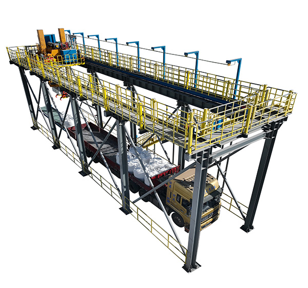 TAL-2T-3M-60系列全自動智能裝車機可以滿足每小時不低于50包/時的裝車工作,實現智能化裝車,可以適用各種敞篷車型、適用于單袋系噸包包裝袋的裝車要求。